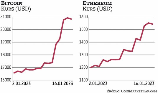 Dużo optymizmu na rynek mógł wnieść odczyt amerykańskiej inflacji za grudzień, który pokazał spadek wskaźnika. – Wydaje się, że znaczne podwyżki cen kryptowalut rozpoczęły się po wtorkowej konferencji prezesa Fedu Jerome’a Powella. Pewna część obserwatorów rynku odczytała jego przemówienie jako zapowiedź końca cyklu podwyżek stóp procentowych. Dwa dni później pojawił się kolejny odczyt inflacji CPI w USA na poziomie 6,5 proc. r./r., wobec poprzednich 7,1 proc., co mogło dodać impetu cenom kryptowalut. Co ciekawe, obecnie wiele walut cyfrowych kosztuje tyle, ile przed kryzysem związanym z bankructwem trzeciej co do wielkości na świecie giełdy kryptowalutowej FTX – podkreśla Grzegorz Dróżdż, analityk Conotoxia.