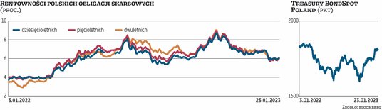 Bardzo dobry początek roku mają za sobą obligacje skarbowe, które kontynuują umocnienie rozpoczęte w IV kwartale poprzedniego roku. Przykładowo iShares 20+ Year Treasury Bond ETF, popularny ETF na długoterminowe amerykańskie obligacje skarbowe, przyniósł już blisko 7 proc. zysku od początku roku. W górę idą także krajowe fundusze dłużne, szczególnie papierów długoterminowych. Wiele z tego typu produktów w tak krótkim czasie zdołało odrobić większość zeszłorocznych spadków. Zauważmy, że rentowności polskich obligacji po tym, jak w pierwszych dniach nowego roku zanurkowały poniżej 6 proc., prawie nie wychodzą powyżej tego poziomu. Oznacza to, że w przypadku papierów dziesięcioletnich dochodowość skurczyła się o około 1,8 pkt proc. w porównaniu z zamknięciem 2021 r. Tymczasem jeszcze kilka tygodni temu nastroje wśród zarządzających i analityków były raczej słabsze. Obawy o recesję były na porządku dziennym, a nadchodzące spadki zysków spółek miały zepchnąć wyceny akcji w dół. Nastawienie wobec obligacji, oferujących sporą poduszkę bezpieczeństwa w postaci wysokich rentowności, było już lepsze, ale nadal sporym problemem miała być wysoka inflacja i konieczność kolejnych podwyżek stóp procentowych przez główne banki centralne. Zarządzający wskazywali na ryzyko wahań rentowności, a nawet powrotu do szczytów z jesieni 2022 r.