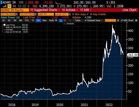 Nawet ignorując wyniki dochodzenia, biorąc dane finansowe Adani Group za wartość nominalną, jej 7 kluczowych spółek notowanych na giełdzie ma 85% spadku czysto fundamentalnie z powodu niebotycznych wycen. Zadłużyły się one, m.in. zastawiając udziały w swoich zawyżonych akcjach na pożyczki, co stawia całą grupę w niepewnej sytuacji finansowej. 5 z 7 kluczowych spółek giełdowych zgłosiło „wskaźniki bieżącej płynności” poniżej 1, co wskazuje na presję na płynność w krótkim terminie.