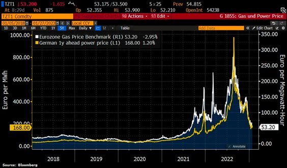 Magazyny gazu w UE są zapełnione w 81 proc., podczas gdy niemieckie magazyny gazu – w prawie 90 proc.. Jest to najwyższy poziom, jaki kiedykolwiek zaobserwowano w styczniu, po dwóch tygodniach wzrostu po 21 grudnia, co jest zjawiskiem niezwykłym. Jeśli pogoda pozostanie łagodna, Niemcy mogą wejść na wiosnę z pojemnością magazynową nadal na poziomie dwóch trzecich, a pojemność magazynowa w UE nadal w ponad połowie – to znacznie lepsze dane niż początkowo oczekiwano.
