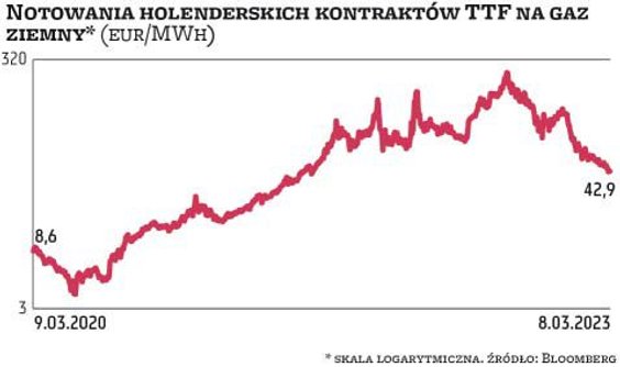 Tymczasem w Europie nie widać końca przeceny gazu ziemnego. W porównaniu ze szczytem z sierpnia notowania holenderskich kontraktów TTF spadły już o ponad 87 proc. W tym roku zniżki wcale nie spowolniły, bo surowiec potaniał o 41 proc. Choć Staremu Kontynentowi udało się uniknąć czarnego scenariusza reglamentacji gazu, to przemysł nie może liczyć na prosty powrót do sytuacji sprzed kryzysu. Zdaniem agencji Bloomberg w Europie można mówić nie tyle o dezindustrializacji, ile o konieczności „rekonfiguracji przemysłu” (ramka 3).