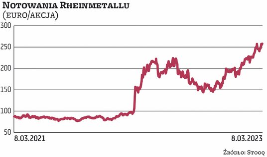 Beneficjentów wojny nie brakuje na rynkach akcji, i to nie tylko ze względu na popyt uchodźców. Być może najlepszym przykładem jest Rheinmetall, niemiecki producent uzbrojenia, której akcje od przedednia rosyjskiej inwazji na Ukrainę podrożały o 170 proc. Jak zauważa ekonomista Wojciech Szymon Kowalski, szeroka oferta produktowa spółki obejmująca od broni i amunicji przez pojazdy bojowe po systemy przeciwlotnicze idealnie wpisuje się w charakter toczącej się wojny konwencjonalnej. – Jednocześnie w oczy rzuca się mocno ograniczona konkurencja, bo atrakcyjnych spółek z tak wyraźną ekspozycją na sektor zbrojeniowy brakuje – zauważa specjalista.