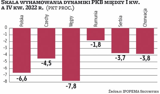 Wzmożonej presji inflacyjnej towarzyszy hamowanie gospodarki, które nad Wisłą jest wyraźniejsze w porównaniu z innymi krajami regionu. Jak zauważa Marcin Sulewski z Ipopemy Securities, dane o PKB za IV kw. dobitnie pokazują trend, w jakim podążają gospodarki regionu Europy Środkowej i Bałkanów. – Jednym z czynników tłumaczących głębsze hamowanie w Polsce, Czechach czy na Węgrzech może być skala i tempo zaostrzania polityki pieniężnej. Podwyżki stóp nastąpiły wcześniej i były większe niż w przypadku pozostałych państw – komentuje specjalista, według którego wpływ działań banków centralnych na gospodarki będzie odczuwalny również w 2023 r.