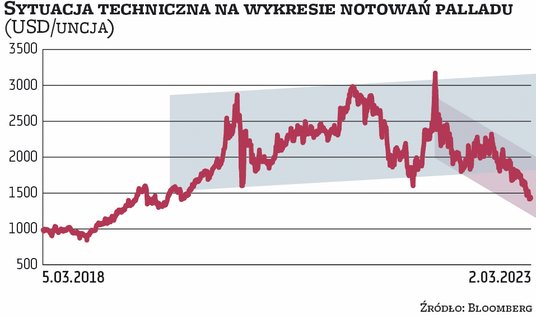 Konsekwencje rosyjskiej inwazji na Ukrainę można znaleźć także w wydarzeniach, które na pierwszy rzut oka nie wydają się mieć z nią związku. Jako przykład Wojciech Białek z Oanda TMS Brokers wskazuje na krach na rynku palladu. Rozmiary opuszczonej na początku tego roku dołem szczytowej konsolidacji sugerują kontynuację przeceny do okolic 1000 dol. za uncję. Zdaniem analityka za załamanie najwyraźniej odpowiada fakt, że ktoś dosyć rozpaczliwie próbuje wyprzedawać zasoby tego metalu szlachetnego. – Jego dwoma zdecydowanie największymi producentami są RPA i Rosja, bo Kanada i USA produkują go już kilkukrotnie mniej. Nie sądzę, by w tym przypadku wyprzedaży dokonywała RPA – sugeruje Białek.