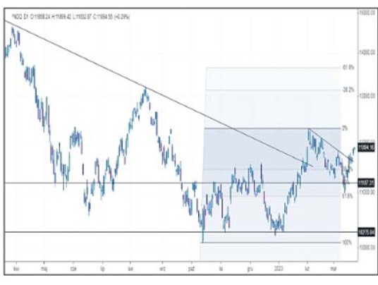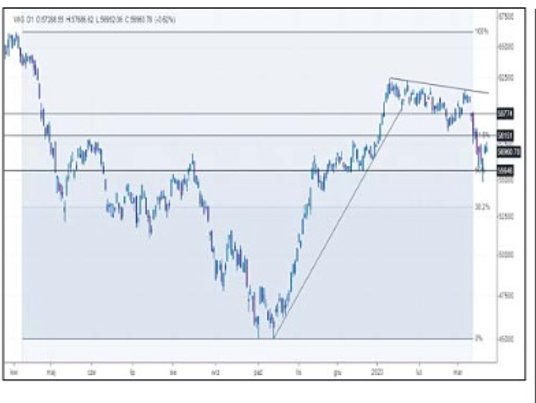 Jak wygląda sytuacja za granicą? – Choć świat zadrżał przed globalnym kryzysem bankowym, to windowany przez branżę technologiczną S&P 500 w marcu wyszedł nad kreskę i wymazał połowę zniżki z minionych kilku tygodni. Za pozytywny sygnał można postrzegać dynamikę 200-pkt odbicia od lokalnego dna – twierdzi Bartosz Sawicki, analityk Cinkciarz.pl. Jak mówi, w jego ramach została zbudowana formacja krótkoterminowego podwójnego dołka. Kurs błyskawicznie powrócił także ponad ważną, 200-sesyjną średnią ruchomą oraz minima z początku marca. S&P 500 wciąż znajduje się jednak w newralgicznym położeniu. – Dopiero zadomowienie się notowań powyżej bariery 4000 pkt i ewidentne sforsowanie spadkowej linii rozpoczętej w pierwszych dniach lutego korekty (najlepiej w cenach zamknięcia tygodnia) byłyby bardziej wiarygodnym potwierdzeniem wzrostowego scenariusza – tłumaczy Sawicki. Z drugiej strony nie brakuje opinii, że ostatnie odbicie to przedsmak bessy. – W taki osąd mogłyby wpisywać się relatywnie niskie obroty podczas wzrostowych sesji z pierwszych dni tygodnia oraz fakt, że więcej niż połowa spółek z indeksu znalazła się pod 200-sesyjną średnią – mówi Sawicki. Pogłębienie ostatnich minimów mogłoby otworzyć drogę do spadków o dalsze 20 proc.