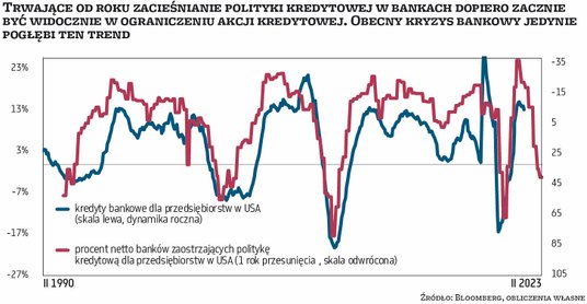 Trwające od roku zacieśnianie polityki pieniężnej przez Fed i inne banki centralne, jak na razie zamiast schłodzenia gospodarki, rynku pracy i konsumpcji przyniosło zdecydowanie inne i to niezamierzone skutki. Najpierw, jesienią ubiegłego roku, na krawędzi bankructwa znalazł się brytyjski sektor funduszy emerytalnych uratowany dzięki interwencji Banku Anglii. Teraz rosnące stopy procentowe i rentowności obligacji skarbowych przyczyniły się do kłopotów w amerykańskim systemie bankowym. Europejskie banki, pomijając ich najsłabsze ogniwo i źródło ciągnących się od dekady kłopotów – bank Credit Suisse, stały się tym razem ofiarami globalnej awersji do sektora finansowego, a nie przyczyną problemu.