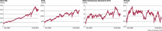 Na giełdach europejskich dominowały byki, ale wielkiej siły nie pokazywały. Indeks we Frankfurcie zwyżkował do środy o 0,7 proc., a CAC40 i FTSE 250 rosły po około 1 proc. Szeroki Stoxx Europe 600 rósł o zaledwie 0,6 proc. Generalnie jednak obraz sytuacji na głównych rynkach naszego kontynentu jest optymistyczny, szczególnie w porównaniu z tym zza oceanu. Korekta jednak nie jest wykluczona. Ciekawie wygląda scenariusz grany na rynkach wschodzących. Słabnący od siedmiu tygodni indeks dolara niezbyt im pomaga. MSCI Emerging Markets, mimo zwyżki z przełomu marca i kwietnia, znajduje się w trendzie bocznym, a próba wybicia się z niego w górę zakończyła się na razie niepowodzeniem. Niewielką korektę widać na głównych parkietach azjatyckich, czyli w Szanghaju, Hongkongu i na Tajwanie. Mimo słabej kondycji chińskiej gospodarki Shanghai Composite radzi sobie nie najgorzej i od kilku miesięcy systematycznie odrabia straty. Spośród parkietów azjatyckich pozytywnie wyróżniał się w ostatnich dniach japoński Nikkei, ale warto zwrócić uwagę, że od kilku tygodni zmienność jego wartości jest bardzo duża, ale niewiele z niej wynika. Wracając do rynków wschodzących, siłą wyróżniała się giełda turecka, której indeks do czwartkowego poranka zwyżkował o 5 proc. Duże wahania mają ostatnio miejsce na giełdzie ukraińskiej, choć po dynamicznych zmianach z poprzednich dwóch tygodni sytuacja nieco się ustabilizowała.