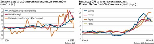 Wstępne, a więc szczątkowe, dane GUS sugerują jednak, że jest to wyłącznie efekt czynników podażowych: normalizacji cen paliw, nośników energii oraz żywności w połączeniu z wysoką bazą odniesienia sprzed roku. Żywność i napoje bezalkoholowe podrożały w kwietniu o 19,7 proc. rok do roku po 24 proc. w marcu, najmniej od września 2022 r. Wyhamowanie wzrostu cen w tej kategorii obniżyło roczną inflację CPI aż o 1,1–1,2 pkt proc. w stosunku do marca. Nośniki energii podrożały w kwietniu o 23,5 proc., najmniej od lutego ub.r., po 26 proc. w marcu. W stosunku do marca ich ceny zmalały o 0,3 proc. Paliwa do prywatnych środków transportu potaniały nawet w ujęciu rok do roku o 0,1 proc. To pierwszy taki przypadek od lutego 2021 r. Później przez niemal dwa lata paliwa stale drożały o ponad 20 proc. rok do roku.