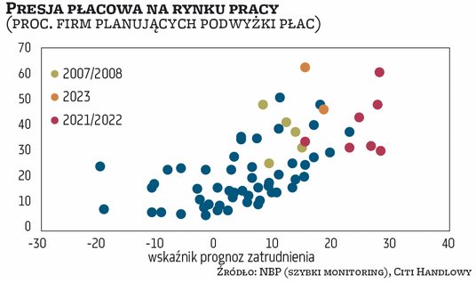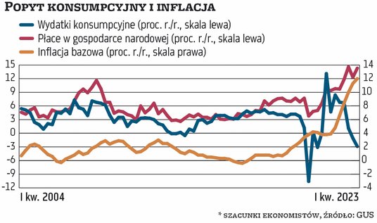 To jednak nie oznacza, że przybliżył się moment powrotu inflacji do celu NBP (wynosi 2,5 proc.). Niepokojącym zjawiskiem pozostaje szybki wzrost cen towarów i usług z kategorii bazowych, tzn. innych niż paliwa, nośniki energii i żywność. W kwietniu, jak szacują ekonomiści na podstawie poniedziałkowych danych GUS (oficjalne dane przedstawi we wtorek NBP), inflacja bazowa zmalała do 12,2 proc. z 12,3 proc. w marcu. Choć byłby to pierwszy spadek tej miary inflacji od czerwca 2021 r., co oznaczałoby, że i ona minęła szczyt, trudno na razie powiedzieć, że presja na wzrost cen w polskiej gospodarce słabnie. Jak szacują ekonomiści z Banku Pekao, w stosunku do poprzedniego miesiąca ceny towarów i usług z kategorii bazowych wzrosły w kwietniu o 1,2 proc., minimalnie mniej niż w poprzednich dwóch miesiącach, ale bardziej niż we wcześniejszych czterech. – W inflacji bazowej długo utrzymuje się szok związany z wysokimi kosztami energii. Wewnętrzną presję inflacyjną podsyca również silny rynek pracy, w tym szybki wzrost wynagrodzeń – tłumaczy Kamil Łuczkowski, ekonomista z Pekao.