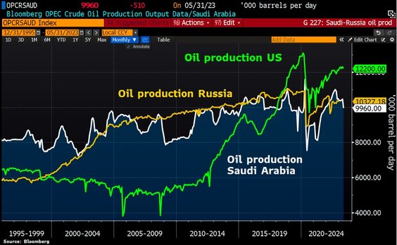 „Królestwo [Arabii Saudyjskiej] wprowadzi dodatkową dobrowolną redukcję wydobycia ropy naftowej, wynoszącą milion baryłek dziennie, począwszy od lipca na miesiąc, który może zostać przedłużony” – poinformowała w niedzielę państwowa saudyjska agencja prasowa. Ta wiadomość spowodowała natychmiastowy wzrost cen ropy. W poniedziałek rano w handlu azjatyckim ropa Brent, światowy benchmark, wzrosła o 1 proc. do 76,9 USD za baryłkę, podczas gdy WTI, amerykański benchmark, wzrósł o 1,2 proc. do 72,6 USD za baryłkę.