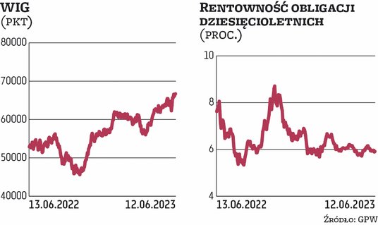 W pierwszym dniu tygodnia większość indeksów akcji zyskiwała na wartości. W grupie tej były także polskie spółki, ale jedynie te największe. WIG20 pod koniec dnia zyskiwał 0,54 proc., sięgając 2062 pkt. W trakcie dnia indeks dużych spółek wzniósł się jednak do niemal 2070 pkt, ustanawiając nowe w tym roku najwyższe poziomy. Co ciekawe, WIG20 przełamał też w poniedziałek barierę 15-proc. zwyżki od początku roku. Co więcej, indeks ma już wyższą stopę zwrotu od mWIG40, który ostatnio przycichł. Podobnie było w poniedziałek – indeks drugiej linii polskich firm zniżkował o 0,5 proc. Warto zauważyć, że najsłabszy w mWIG40 był producent gier 11 bit studios. Jednocześnie reprezentujący tę samą branżę CD Projekt liderował krajowym blue chips, zyskując o ponad 11 proc. W gronie dużych firm słabiej zachowywały się jednak na otwarciu tygodnia banki, które napędzały ostatnie zwyżki benchmarku. mBank tracił 4,5 proc., a Santander 2,3 proc. W słabszej formie przy przecenie miedzi było też KGHM. Wśród małych spółek tylko z pozoru działo się niewiele. Indeks utrzymywał się przy poziomie zamknięcia z piątku, jednak dwie spółki zyskiwały ponad 5 proc. (Mostostal Zabrze i GreenX Metals), a trzy zniżkowały o ponad 3 proc., m.in. Mirbud. sWIG80 z 23-proc. wzrostem od początku roku utrzymuje pozycję lidera na GPW, natomiast benchmarki pozostałych grup spółek liczą dwucyfrowe zwyżki. Jak na razie zatem trend wzrostowy na GPW trwa w najlepsze i najwyższe w historii tempo podwyżek stóp procentowych nie podkopało perspektyw firm.