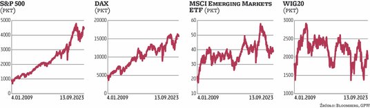 Drożejącym dolarem przestały w ostatnich tygodniach przejmować się rynki wschodzące. W tym czasie MSCI Emerging Markets porusza się w bok. Do środy zwyżkował o 0,8 proc. po poprzednim spadku o 2,3 proc. Równowagę na relatywnie niskim poziomie stara się łapać parkiet w Chinach. Shanghai Composite do środy szedł w górę o zaledwie 0,2 proc., ale to pewien postęp na tle poprzedniej kilkutygodniowej dość dynamicznej fali spadkowej. Utrzymywanie się tego indeksu powyżej 3100 punktów daje pewną nadzieję na ruch w górę. Gorzej wygląda sytuacja w Hongkongu, gdzie indeks tracił nieco ponad 1 proc. Na tym tle pozytywnie wyróżniało się kilka parkietów naszego regionu. Indeks giełdy ukraińskiej do środy zwyżkował o ponad 2,5 proc., po 10,5-proc. skoku z poprzedniego tygodnia. W Bukareszcie zwyżka przekraczała 2 proc., a w Pradze 1 proc.