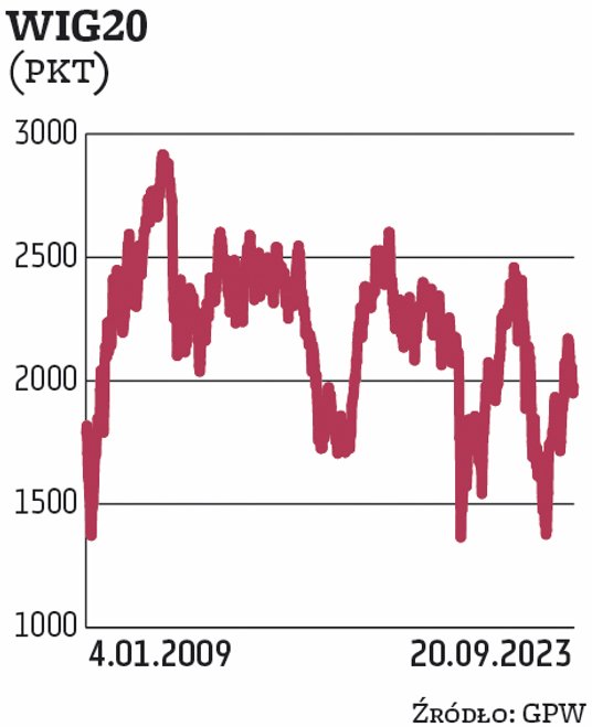 Trwa rozpoczęta pod koniec sierpnia fala odrabiania wcześniejszych strat przez walory JSW. Wciąż jednak znajdują się one w gronie największych spadkowiczów, licząc od początku roku (spadek o 21,5 proc.). Po przekraczającym 16 proc. skoku kursu z poprzedniego tygodnia do środy szedł on w górę o 5,5 proc. Spółce pomaga wzrost cen węgla na światowych rynkach, postępujący mimo obaw o spowolnienie w globalnej gospodarce. O nieco ponad 5 proc. drożały papiery Santandera, broniąc się przed zejściem poniżej 350 zł i próbując przełamać trwającą od końca lipca spadkową korektę. Czwarty tydzień z rzędu trwa próba powrotu na rekordowy poziom w przypadku akcji Kruka, które do środy zwyżkowały o 2,8 proc. Po nieco ponad 2 proc. w górę szły akcje Orange, Pekao SA i LPP. W przypadku tych pierwszych także mamy do czynienia z trwającą od pięciu tygodni falą wzrostową, zwieńczoną powrotem do poziomu najwyższego od końca lutego ubiegłego roku. Od 6 września, czyli od dnia ogłoszenia zaproszenia do sprzedaży akcji spółki, trwają na tym rynku spore wahania, a do środy kurs znajduje się poniżej ceny ogłoszonej w zaproszeniu. Po niedźwiedziej stronie prym wiodły taniejące o 3,9 proc. akcje Allegro. Tendencja spadkowa trwa w ich przypadku niemal nieprzerwanie od końca maja. W tym czasie straciły one łącznie nieco ponad 21 proc. Nie widać końca przeceny walorów Pepco. Do środy taniały one o 3,2 proc., a momentami skala spadku była jeszcze większa. W poprzednim tygodniu tąpnięcie sięgnęło niemal 12 proc., co było reakcją na obniżenie przez spółkę prognoz EBITDA. Pepco jest liderem spadków w gronie największych firm, licząc od początku roku (33 proc.). Do łask wciąż nie mogą wrócić papiery Cyfrowego Polsatu, które po spadku o 2,3 proc. wciąż znajdują się na poziomie najniższym od maja 2013 r.