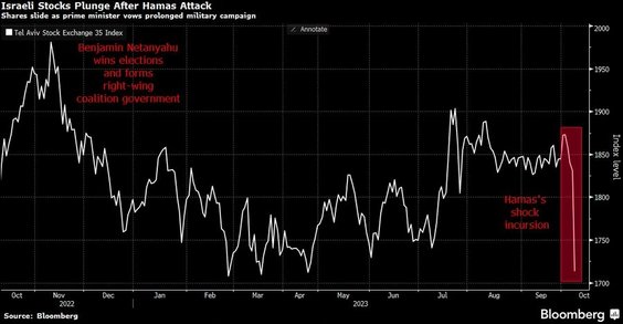 Akcje giełdy w Tel Awiwie spadły w niedzielę, gdy inwestorzy przygotowywali się na niepewne czasy i obawy dotyczące znacznych szkód dla izraelskiej gospodarki po bezprecedensowym, niespodziewanym ataku na Izrael przeprowadzonym przez grupę terrorystyczną Hamas ze Strefy Gazy.