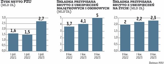 Wzrostowi notowań pomagały dobre wyniki. W pierwszej połowie 2023 r. Grupa PZU zwiększyła przychody brutto z ubezpieczeń do 13 mld zł – o blisko miliard złotych więcej niż w tym samym okresie roku poprzedniego. Zysk netto przypadający na akcjonariuszy jednostki dominującej, czyli PZU, sięgnął 2,7 mld zł i był wyższy prawie o 50 proc. r./r. W samym drugim kwartale wzrósł do 1,545 mld zł z 949 mln zł rok wcześniej.