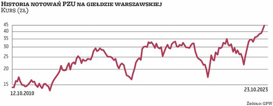 Analitycy zwracają uwagę, że korzystny wpływ na wyniki PZU mają wysokie stopy procentowe i że jako jedyna spółka z branży finansowej PZU jest jedynie w niewielkim stopniu narażona na regulacyjne czy prawne miny w stylu wakacji kredytowych czy wyroków TSUE. Ubezpieczyciel unikał też bycia podmiotem w polityczno-społecznych rozgrywkach właściciela, typu tańsze paliwo (Orlen), dotowanie klientów (banki poprzez zbyt wysokie oprocentowanie lokat w niektórych przypadkach czy wakacje kredytowe bez cienia sprzeciwu ze strony np. PKO czy Pekao) czy pokrywanie kosztów wzrostu cen energii (branża energetyczna czy gazowa). Notowaniom akcji PZU pomagają też wypłacane co roku sute dywidendy. Gdy w czerwcu tego roku walne zgromadzenie zdecydowało o wypłacie dywidendy w wysokości 2,40 zł na akcję i przeznaczenie na nią łącznie 2,07 mld zł, kurs naszego największego ubezpieczyciela przebił 41 zł. Dywidenda została wypłacona pod koniec września. Łącznie od czasu debiutu na warszawskiej giełdzie w 2010 r. PZU wypłaciło swoim akcjonariuszom przeszło 30 mld zł dywidendy.