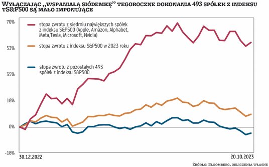 Powodów było kilka – atak Hamasu na Izrael, przetestowanie przez rentowność 10-letnich amerykańskich obligacji skarbowych poziomu 5 proc. oraz obiektywnie niezły, ale niezbyt dobrze przyjęty przez inwestorów sezon wynikowy w USA. W rezultacie, po 10 miesiącach tegorocznej hossy, indeks S&P 500 (z równymi wagami spółek) spada o 3 proc., a indeks Russell 2000 znalazł się na najniższym poziomie od trzech lat. Widziałem bardziej przekonujące rynki byka. Za to krajowy indeks WIG20 okazał się w październiku prawdziwą gwiazdą (a może nawet bezpieczną przystanią), rosnąc w twardej walucie o 14 proc., pobijając dokonania złota, a ustępując jedynie bitcoinowi.