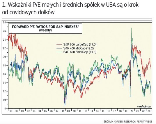 Z naszej analizy wynika, że żaden z wymienionych zarzutów pojawiających się w stosunku do indeksu blue chips nie ma obecnie zastosowania do akcji małych i średnich firm (dalej: MiŚ) na Wall Street. Zacznijmy od wskaźników P/E. O ile w przypadku S&P 500 sezonowa wyprzedaż sprawiła „jedynie”, że akcje reprezentowane przez ten indeks stały się mniej drogie, o tyle w przypadku MiŚ można już z powodzeniem mówić, że wyceny wkroczyły na terytorium wręcz... okazyjne.