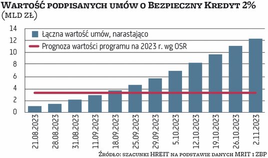 – Już dziś widać, że plan ten przekroczono czterokrotnie, a w listopadzie i grudniu trudno spodziewać się wyhamowania, bo zgodnie z obowiązującym prawem może być to ostatni moment na skorzystanie z preferencyjnego kredytu – przewiduje analityk.