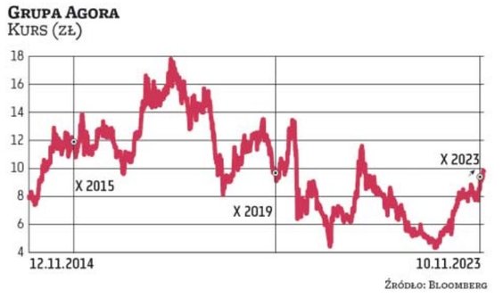 Polityczny przełom ma swoich wielkich wygranych. Jak zauważa Wojciech Szymon Kowalski, wśród notowanych na GPW spółek pod względem stopnia korelacji notowań ze zmianami układu politycznego przynajmniej od połowy poprzedniej dekady prym wiedzie Agora. Od początku tego roku kurs wydawcy ,,Gazety Wyborczej” wzrósł o ponad 100 proc.