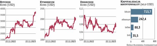 Bitcoin tracił w środę po południu blisko 2 proc. wobec dolara. Za 1 bitcoina płacono wówczas 36,5 tys. USD. Rano przecena była nieco głębsza. Kurs spadł bowiem poniżej 35,8 tys. USD. Te spadki były częściowo reakcją na to, że Binance, największa giełda kryptowalutowa świata, zawarła ugodę z amerykańskimi regulatorami w sprawie dotyczącej prania brudnych pieniędzy. Łączne kary nałożone na Binance w ramach tej ugody to ponad 4,3 mld USD. Choć są one duże, to część inwestorów mogła odetchnąć z ulgą, że sprawa nie skończyła się dużo gorzej.