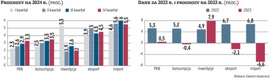 Credit Agricole podkreśla, że w kierunku wzrostu dynamiki konsumpcji oddziałuje również ustąpienie efektu wysokiej ubiegłorocznej bazy, związanej ze wzrostem wydatków gospodarstw domowych wywołanych napływem uchodźców z Ukrainy.
