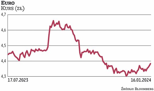 Krajowej walucie nie sprzyja pogorszenie nastrojów na świecie, co przekłada się na mocniejszego dolara , który próbuje odrabiać straty po silnej przecenie z IV kwartału 2023 r. wywołanej wzmocnieniem oczekiwań związanych z rozpoczęciem obniżek stóp procentowych w USA. W efekcie na fali wracającej do łask amerykańskiej waluty notowania euro względem dolara powróciły w ostatnich tygodniach z 1,11 do poniżej 1,09. Zdaniem Marka Rogalskiego, analityka walutowego DM BOŚ, był to jeden z dwóch kluczowych czynników – obok wydarzeń krajowych – które przyczyniły się do osłabienia naszej waluty. – Po pierwsze, mieliśmy do czynienia z odbiciem w górę mocno przecenionego w grudniu dolara na globalnych rynkach. Wydaje się, że rynki mogły nieco przesadzić z oczekiwaniami wobec Fedu, wypatrując aż siedmiu obniżek stóp w tym roku począwszy od marca. Po drugie, na to nałożyła się sytuacja polityczna w naszym kraju, choć bez wątku globalnego, ten nie byłby w stanie wygenerować poważniejszego ruchu. Rynki zdaje się zakładały, że po październikowych wyborach wszystko pójdzie gładko, a środki z KPO pojawią się niedługo. Tymczasem czekać nas może trudna batalia polityczna i nie można wykluczyć niczego – łącznie z nieprzyjęciem projektu przyszłorocznego budżetu i przyspieszonymi wyborami – uważa Rogalski. Wskazuje, że czynnik ryzyka dla złotego stanowi potencjalne pozbawienie prezesa Adama Glapińskiego funkcji szefa NBP. – Każde takie zamieszanie prowadzi do niepewności, której rynki zwyczajnie nie lubią. Nie można zatem wykluczyć, że złoty jeszcze nieco się osłabi, ale nie oczekujmy, jakiegoś spektakularnego ruchu jak we wrześniu zeszłego roku. Warto wspomnieć, że oczekiwania ekonomistów idą w stronę braku obniżek stóp przez RPP w tym roku, co mogłoby dać dość mocny impuls do umocnienia złotego począwszy już od wiosny – wskazuje ekspert.