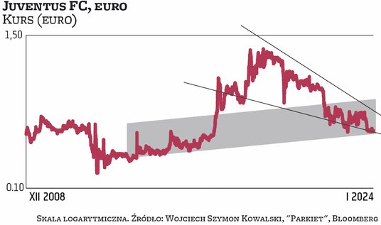 Rok 2024 powinien przynieść kontynuację dynamicznego rozwoju segmentu inwestycji alternatywnych – zapowiada Wojciech Szymon Kowalski, według którego warto przyjrzeć się akcjom Juventusu FC. Notowania spółki odbiły z okolic 25 centów (o ponad 90 proc. niższego niż w IPO z 2001 r.). Z technicznego punktu widzenia mają szansę zwyżkować w kierunku górnego ograniczenia opadającego klina, a w razie jego przełamania – nawet do górnego ograniczenia lekko zwyżkującego kanału.