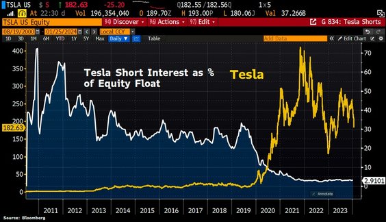 Inwestorzy obstawiający przeciwko wzrostom mają za sobą lukratywny dzień. Według firmy analitycznej Ortex Media, krótka sprzedaż zarobiła na Tesli od środowego zamknięcia ponad 2 miliardy dolarów. Po ponad dwukrotnym wzroście w 2023 r., akcje spółki spadły obecnie o 27 proc. w skali roku.