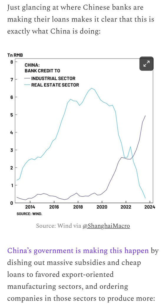 Obsesję Xi na punkcie produkcji można wytłumaczyć potrzebą zrównoważenia kryzysu na rynku nieruchomości w Chinach. Urzędnicy mają teraz nadzieję, że przemysł może nadrobić zaległości. Banki państwowe – główne źródło finansowania przedsiębiorstw w Chinach – przekazują gotówkę firmom przemysłowym. Eksporterom w potężnych prowincjach powiedziano, aby zwiększyli produkcję. W ciągu pierwszych 11 miesięcy 2023 roku nakłady inwestycyjne na wytapianie metali, produkcję pojazdów i produkcję sprzętu elektrycznego wzrosły odpowiednio o 10 proc., 18 proc. i 34 proc. w porównaniu z tym samym okresem 2022 roku. Krajowi giganci stalowi wyprodukowali więcej metalu, mimo że ucierpiała branża nieruchomości. Huty, które mają dostęp do taniego kapitału, są skłonne ponieść znaczne straty, aby zachować udział w rynku.