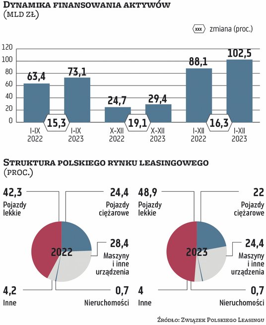 Pomijając nieruchomości, które są ciągle na minusie, łącznie aktywa sfinansowane przez firmy leasingowe mogą w efekcie przekroczyć, wedle szacunków branży, 118 mld zł.