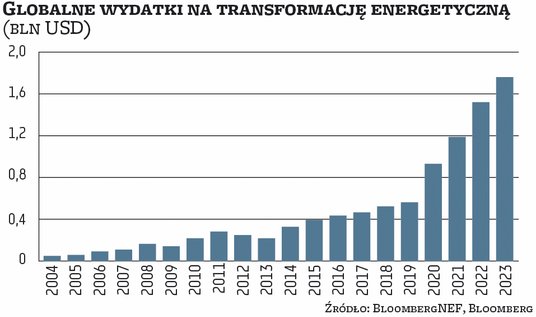 Tymczasem po trudnym okresie odetchnąć od bardzo wysokich opłat za emisje może energetyka – w rok spadły one prawie o 40 proc. (ramka 1). Elektrowniom węglowym pomogli przeżywający boom producenci energii odnawialnej. Wydatki na transformację energetyczną zwiększają się też na świecie, jednak dynamika ich wzrostu utrzymuje się znacznie poniżej ścieżki pozwalającej na osiągnięcie zerowych emisji netto do 2050 r. (ramka 6).