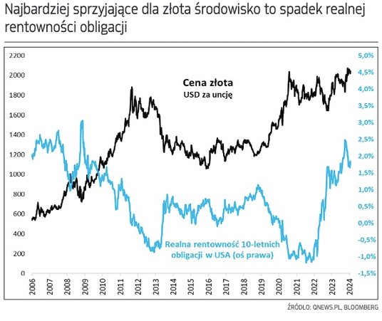 Ostatnie ponad trzy lata to dla złota bardziej szeroki trend boczny niż hossa czy bessa. W ramach tego trendu notowania raz dotykały wielomiesięcznych minimów, innym razem – jak w końcówce 2023 r. – ocierały się o rekordy. Ewidentnie widać tu pewną równowagę sił z pojawiającym się co jakiś czas apetytem na wejście w trwalszą hossę. Przyjrzyjmy się zarówno „hamulcom” powstrzymującym trend wzrostowy, jak i pozytywnym impulsom.
