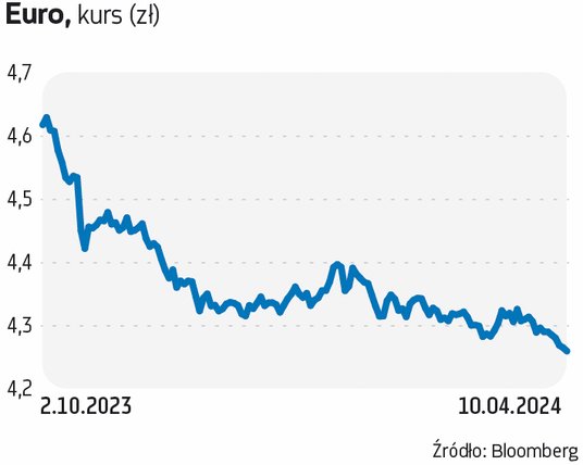 Z przewidywań ekonomistów wynika, że polska waluta ma jeszcze trochę miejsca do umocnienia w drugim kwartale. – Widzimy przestrzeń do dalszego stopniowego umocnienia złotego w kierunku 4,20 za euro w trakcie pierwszego półrocza. Zważywszy na dynamikę rynku w ostatnich dniach, możliwe, że do tego celu dotrzemy szybciej, niż nam się wydaje. Czynniki sprzyjające spadkowi kursu EUR/PLN to wyczekiwanie na napływ środków unijnych oraz mało gołębi ton RPP, przynajmniej w porównaniu z EBC – wyjaśnia Grzegorz Ogonek, ekonomista Santander Bank Polska. W jego ocenie jest mało prawdopodobne, żeby w tym roku doszło do poluzowania polityki pieniężnej w Polsce. – Rynek co prawda zaczął już ograniczać wycenę skali obniżek stóp procentowych, ale jest wciąż dość daleko od naszego scenariusza. Jeśliby rynek miał iść w wyznaczoną przez nasz scenariusz stronę, stwarzałoby to potencjał do umocnienia złotego. Z kolei przeszkodą w aprecjacji może być to, że najwyraźniej duża część uczestników rynku jest już spozycjonowana pod dalsze umocnienie złotego. Dalsze przesuwanie EUR/PLN w dół wymagałoby napływu nowych pieniędzy na rynek – uważa.