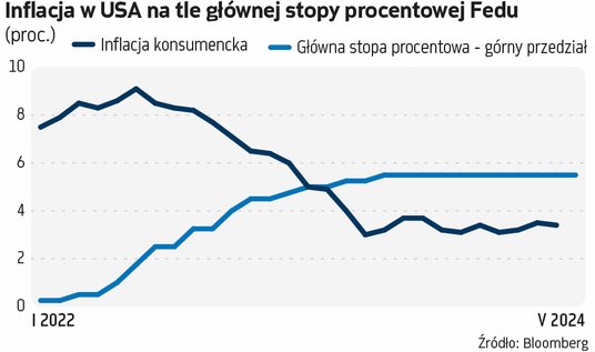 Inflacja konsumencka w USA nie przyniosła w środę nieprzyjemnej niespodzianki inwestorom. Wyhamowała ona z 3,5 proc. w marcu do 3,4 proc. w kwietniu, co było zgodne z prognozami. W porównaniu z poprzednim miesiącem ceny wzrosły o 0,3 proc., podczas gdy średnio się spodziewano ich zwyżki o 0,4 proc. Inflacja bazowa (czyli nieuwzględniająca zmian cen żywności, paliw i energii) zwolniła z 3,8 do 3,6 proc., co było zbieżne z oczekiwaniami. Licząc miesiąc do miesiąca, zeszła ona z 0,4 do 0,3 proc.
