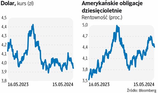 W reakcji na dane o inflacji oraz o sprzedaży detalicznej dolar tracił w środę po południu 0,5 proc. wobec złotego. Za 1 USD płacono wówczas poniżej 3,93 zł. Kurs stał się więc najniższy od pierwszej połowy kwietnia. Euro zdrożało natomiast do 1,086 USD. O ile tuż przed publikacją danych rentowność amerykańskich obligacji dziesięcioletnich wynosiła 4,42 proc., to później szybko spadła do 4,36 proc. Sesja na giełdzie w Nowym Jorku zaczęła się natomiast od zwyżek. S&P 500 zyskiwał na jej początku 0,5 proc. i już wówczas ustanowił nowy rekord wszech czasów.