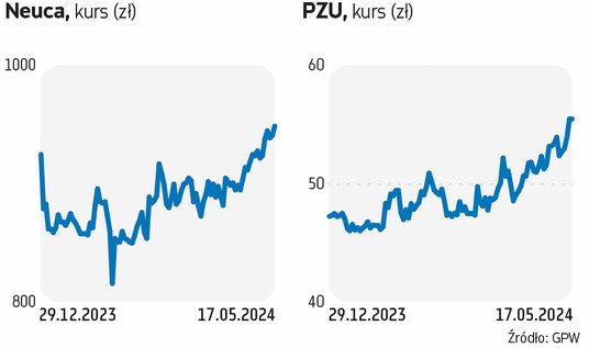 Spółek „rekordzistów" nie trzeba daleko szukać, gdyż można je znaleźć nawet w indeksie WIG20. Docenione przez inwestorów zostało PZU, pozostając jednak nieco w cieniu banków, będących głównym motorem hossy. Mimo to w tym roku wycena ubezpieczyciela po raz pierwszy w historii przekroczyła 48 mld zł. Zdaniem analityków mocnymi argumentami PZU są wyniki i atrakcyjna dywidenda. – Utrzymujące się wysokie stopy procentowe korzystnie wpływają na wynik z portfela papierów dłużnych posiadanych przez PZU. Choć ryzyko spadku koniunktury, skutkujące spadkiem aktywności gospodarczej i konsumpcji i mniejszymi wydatkami na polisy, nie zostało definitywnie zażegnane, to jednak prognozy wydają się być lepsze niż jeszcze kwartał czy dwa temu. Warto podkreślić, że w przypadku PZU nie występują duże ryzyka regulacyjne czy systemowe, które mogą wpływać w 2024 roku na sektor bankowy (ryzyko kredytów hipotecznych, kolejne wakacje kredytowe, ryzyko sporów o abuzywność kredytów konsumpcyjnych), co wraz z wysoką dywidendą zwiększa atrakcyjność spółki dla inwestorów – wylicza Marcin Materna, analityk BM Banku Millennium. Jednocześnie wskazuje na atrakcyjną wycenę spółki. – Wycena spółki nie jest wysoka (C/Z<9), więc jest jeszcze potencjał do wzrostów, tym bardziej że nie ma jak na razie niebezpieczeństwa znacznego spadku stóp procentowych, a i wrażliwość wyników PZU na koniunkturę jest stosunkowo niska na tle np. banków – argumentuje.