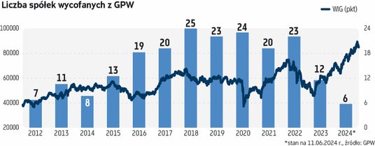 WIG od prawie dwóch lat porusza się w trendzie wzrostowym, co powinno zniechęcać do ściągania spółek z giełdy. Ale decyzja o delistingu zależy od wielu czynników, a wycena niekoniecznie jest najważniejszym.