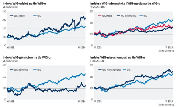 Choć nieco ponad tydzień wystarczył indeksowi WIG-banki do odrobienia blisko dwóch trzecich strat z trwających dwa miesiące zniżek, to w kategoriach relatywnych odbicie jest wyraźnie skromniejsze. Potencjalnym katalizatorem pogorszenia nastawienia do banków może być zbliżanie się na świecie niekorzystnych dla branży obniżek stóp procentowych, jednak na otrąbienie końca bankowej hossy jest jeszcze za wcześnie. Co w trawie piszczy w innych branżach?
