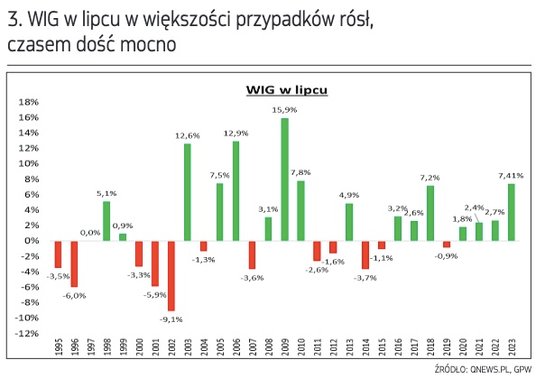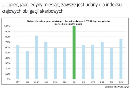 Pod tym względem z lipcem nie jest w stanie rywalizować żaden inny miesiąc roku. Drugi w rankingu marzec może się pochwalić nieco ponad 80 procentami przypadków na plusie.
