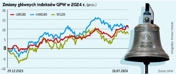 Indeks sWIG80, skupiający na warszawskiej giełdzie małe spółki, najszybciej spośród najważniejszych segmentów krajowego rynku odrobił straty z ostatniej korekty, wspinając się na nowe szczyty trwającej już ponad 20 miesięcy hossy. Licząc od początku stycznia bieżącego roku, zyskał już prawie 12 proc., z czego połowę tego wyniku udało się wypracować od czerwcowego dołka korekty, zostawiając w tyle pozostałe segmenty. Dla porównania WIG20 w 2024 r. zyskał tylko niecałe 8 proc.