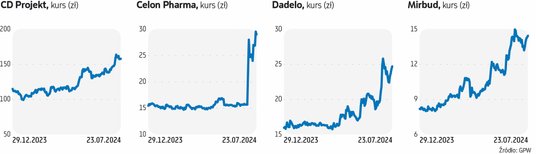 Ostatnie tygodnie były mocno rozczarowujące zwłaszcza dla posiadaczy akcji największych firm. Wśród nielicznych spółek z indeksu WIG20, których notowania skutecznie oparły się negatywnym nastrojom, był CD Projekt. Licząc od początku 2024 r., jego akcje zyskały już blisko 40 proc., ale znacząca część zwyżki została wypracowana w ciągu trzech ostatnich miesięcy. – Wydaje się, że inwestorzy w końcu przekonali się do spółki, mając na uwadze jej silne fundamenty i spory potencjał, jaki wiąże się z posiadaniem dwóch bardzo mocnych IP, tj. gier z uniwersum „Wiedźmina” oraz „Cyberpunka”. Natężenie raportów analitycznych pokazujących wartość studia mogło w końcu uświadomić zagranicznym zarządzającym, że przestrzeń do dalszego grania na spadki jest już ograniczona. Oczywiście mnożniki dla najbliższych lat pozostają mało atrakcyjne na tle konkurencji, natomiast za CD Projektem stoi wartość w dłuższym terminie i najwidoczniej rynek doszedł do wniosku, że akcje są jednak w tym kontekście niedowartościowane – uważa Mateusz Chrzanowski, analityk Noble Securities. – Zbliża się również okres, w którym można się spodziewać pierwszych materiałów informacyjnych odnośnie do nowej odsłony „Wiedźmina”, a zatem inwestorzy być może chcą być przygotowani na ten etap. Spółce sprzyja również cykl globalnej polityki pieniężnej, która weszła w fazę luzowania, a co za tym idzie, powinna ona premiować spółki wzrostowe, do których niewątpliwie zalicza się CD Projekt – dodaje.
