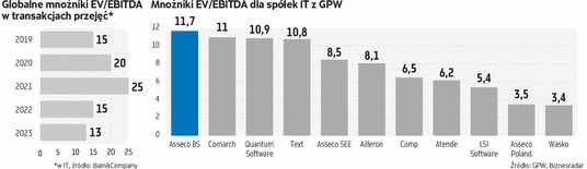 Wyceny przejmowanych spółek technologicznych na świecie spadły drugi rok z rzędu i są niemal o połowę niższe niż w 2021 r. – wynika z raportu Bain & Company. Na rynku głównym GPW jest notowanych ponad 50 spółek z sektora nowych technologii, w tym 32 stricte informatycznych. Ich średni wskaźnik ceny do zysku jest w okolicach 20. W ostatnich latach gros firm rozbudowało swój biznes, natomiast ich wyceny poszły w górę słabiej niż szeroki rynek. I zdecydowanie słabiej niż wyceny największych koncernów technologicznych w USA, które są motorem tamtejszej hossy.