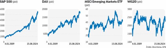 Zestaw ważnych informacji makroekonomicznych ze Stanów Zjednoczonych, jakie napłynęły w ostatnich dniach, stworzył dobre warunki do ruchu w górę nieco sponiewieranych w poprzednich tygodniach indeksów giełdowych. Z jednej strony bowiem okazało się, że dynamika inflacji obniża się (do 2,9 proc.), a więc nieco mocniej, niż się spodziewano, ale jednocześnie nie na tyle mocno, by podsycać obawy przed recesją. Nadal jest jeszcze znacznie powyżej celu, ale też umożliwia władzom monetarnym spokojne i konsekwentne działanie. Scenariusze radykalnych ruchów, jakie niedawno pojawiały się w części opinii, stały się nieaktualne i można spodziewać się, że na wrześniowym posiedzeniu Fed obniży stopy procentowe o 0,25 punktu procentowego, a dalsza ścieżka będzie kształtować się wraz z napływem kolejnych danych. Z drugiej strony, najnowsze informacje także oddalają perspektywę recesji, która do niedawna mocno wystraszyła inwestorów i doprowadziła do dynamicznych spadków na rynkach akcji. W czwartek opublikowano dane wskazujące, że nie potwierdzają się obawy o kondycję konsumentów. Sprzedaż detaliczna w lipcu wzrosła bowiem o 1 proc., choć spodziewano się zwyżki o jedynie 0,3 proc. Także sprzedaż po wyłączeniu samochodów pozytywnie zaskoczyła. O pewnym rozczarowaniu można mówić jedynie w przypadku dynamiki sprzedaży bez samochodów i paliw, która okazała się o połowę niższa niż w czerwcu i wyniosła 0,4 proc. Niższa, niż prognozowano, była liczba wniosków o zasiłki dla bezrobotnych, uspokajając nieco nastroje po niedawnych słabych danych z rynku pracy. Słabo wypadła lipcowa produkcja przemysłowa, obniżając się o 0,6 proc., a więc dwukrotnie mocniej, niż oczekiwano. Niezbyt optymistyczny obraz dają odczyty indeksu NY Empire State i Fed z Filadelfii. Oba znalazły się pod kreską, ale w przypadku tego pierwszego dynamika spadku wyraźnie się zmniejszyła, a dla drugiego nie był on niepokojąco duży.
