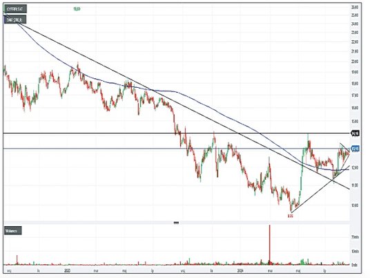Na wykresie technicznym uwagę zwraca wybicie w połowie maja ponad linię długoterminowego trendu spadkowego. Wybicie to było bardzo dynamiczne i towarzyszyły mu wzrosty obrotów. Z okolic 10 zł kurs powędrował aż do ponad 14 zł, docierając w ten sposób do szczytu z listopada ubiegłego roku. Następnie doszło do korekty, która zniosła około 50 proc. majowej fali wzrostowej, natomiast zatrzymała się na wspomnianej linii trendu spadkowego, która odegrała wówczas już rolę wsparcia.