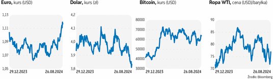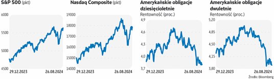 Obecnie spora część z nich liczy na to, że początek cyklu luzowania polityki pieniężnej zacznie się od mocnego akcentu, czyli od obniżki stóp o 50 pkt baz. W poniedziałek po południu barometr CME FedWatch wskazywał, że prawdopodobieństwo takiego ruchu wynosi 38,5 proc., a cięcia o 25 pkt baz. sięga 61,5 proc. Sugerował on również, że jest 42,9 proc. szans na to, że po grudniowym posiedzeniu Fedu główna stopa będzie w przedziale 4,25–4,50 proc., 29,7 proc., że wyniesie 4,0–4,25 proc., 6,9 proc., że zejdzie do 3,75–4,0 proc., a tylko 20,5 proc., że sięgnie 4,5–4,75 proc. Obecnie stopa ta jest w przedziale 5,25–5,5 proc. Rynek wyraźnie więc oczekuje, że Fed będzie w nadchodzących miesiącach ciął stopy mocniej niż trzy razy po 25 pkt baz.