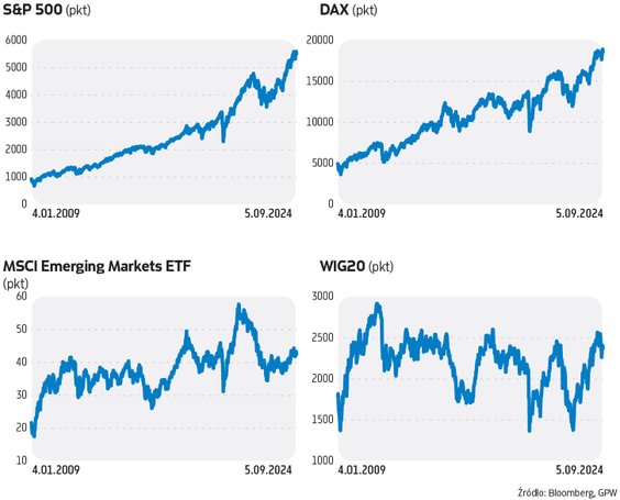 Trwająca od pierwszych dni sierpnia dobra passa giełd naszego kontynentu zaczyna mierzyć się z korektą. DAX, który jeszcze na początku minionego tygodnia osiągał rekordowe poziomy, do czwartku zniżkował o 1,65 proc. Paryski CAC 40 tracił aż 2,6 proc., a londyński FTSE 250 szedł w dół o 1,5 proc. Mocno, o nieco ponad 2 proc., zniżkował indeks europejskich firm Stoxx Europe 600. Na razie można te ruchy traktować w kategoriach korekty wcześniejszej fali wzrostowej, ale rodzą one pewne obawy związane z możliwością pogłębienia spadków. Wskaźniki makroekonomiczne zdają się wspierać bycze nastroje. Co prawda zamówienia w niemieckim przemyśle zanotowały solidny wzrost w lipcu, ale mniejszy niż miesiąc wcześniej, za to nieoczekiwanie spadła sprzedaż detaliczna w strefie euro. Słabiej, niż oczekiwano, wypadły wskaźniki PMI dla europejskich usług, nieznacznie lepsze okazały się wskazania dla przemysłu. Mocne, przekraczające 5 proc., tąpnięcie miało miejsce na giełdzie japońskiej. Pogarsza się sytuacja na rynkach wschodzących. MSCI Emerging Markets idzie w dół drugi tydzień z rzędu, tym razem o 1,8 proc. Na razie to wciąż wygląda na korektę, ale niepokoić może fakt, że ruch ten ma miejsce przy osłabieniu się amerykańskiej waluty. Spadki przeważały zdecydowanie na giełdach azjatyckich. Shanghai Composite zniżkował o 1,9 proc., schodząc do poziomu najniższego od pierwszych dni lutego. W Hongkongu spadek sięgał 3 proc., a na Tajwanie – niemal 4,9 proc.