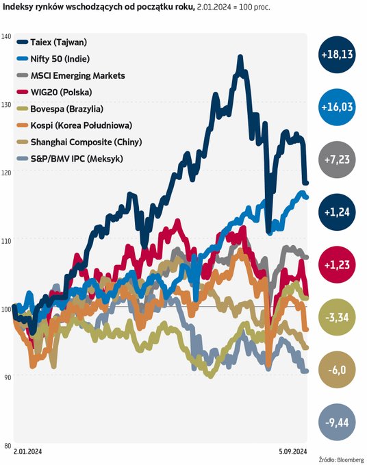 Krajem, w którym wyceny na giełdzie nie są już niskie, patrząc na średnią dla rynków wschodzących, ale nadal wygląda atrakcyjne ze względu na perspektywy gospodarcze, są Indie. Wskaźnik ceny do zysku dla indyjskiego indeksu Nifty 50 sięga 24,7, wobec 15,2 dla rynków wschodzących. Indyjski indeks ma za sobą mocne wzrosty, a akcje z tego kraju przyciągnęły rzeszę inwestorów zagranicznych. Wsparciem byli także lokalni inwestorzy, bowiem szacuje się, że od 2022 r. do indyjskich akcji napłynęło netto 70 mld USD od krajowych inwestorów.