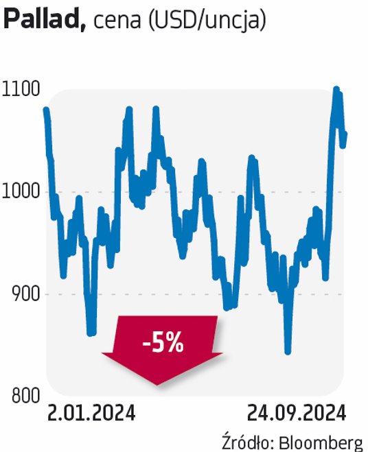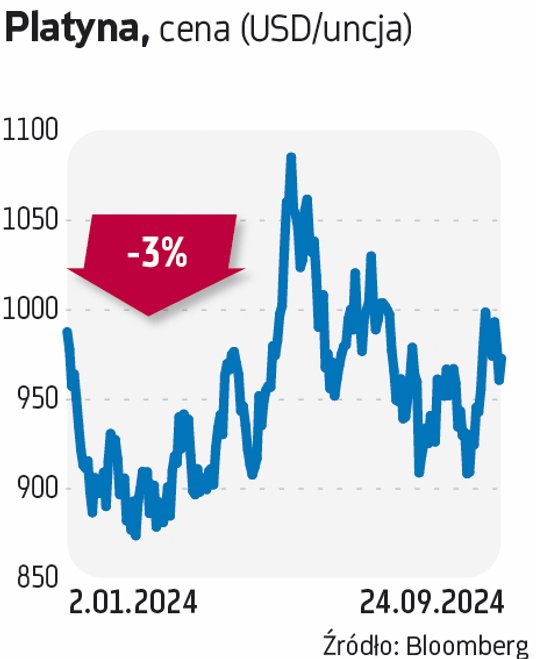 Jak prezentują się tegoroczne zwyżki cen złota na tle notowań innych metali szlachetnych? Zarówno platyna, jak i pallad były we wtorek o kilka procent tańsze niż na początku roku. Cena palladu sięgnęła jednak we wrześniu najwyższego poziomu od pierwszego tygodnia stycznia. Notowania platyny wróciły natomiast zaledwie do poziomu z połowy lipca. O ile w majowym szczycie cena przekraczała 1105 USD za uncję, to we wtorek po południu wynosiła około 973 USD za uncję. Oba metale mają zastosowania przemysłowe, więc oddziaływało na nie w tym roku spowolnienie gospodarcze dostrzegalne w Chinach i w Europie Zachodniej.