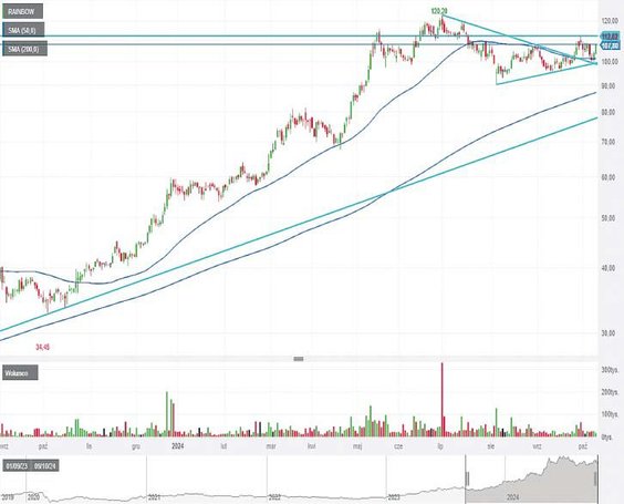 W dłuższym terminie Rainbow pozostaje w trendzie wzrostowym, choć w ostatnich miesiącach kurs złapał zadyszkę. Jak na razie najgorszym miesiącem dla organizatora wyjazdów turystycznych był lipiec, kiedy notowania osunęły się o 12,3 proc. Każdy z pozostałych miesięcy tego roku kończył się jednak zwyżką. Od początku roku akcje Rainbow Tours zyskały 87 proc. wobec 6-proc. umocnienia WIG-u.